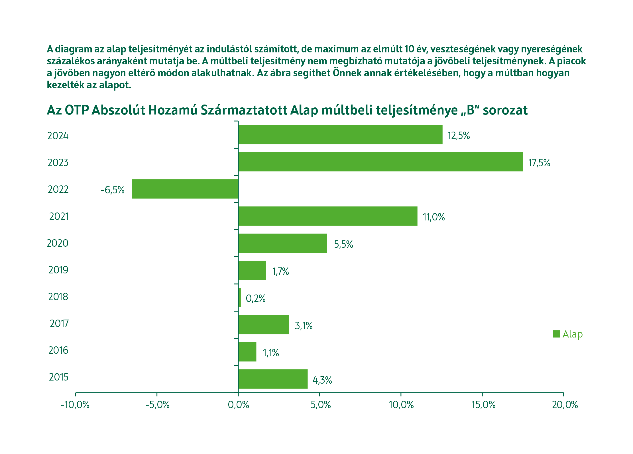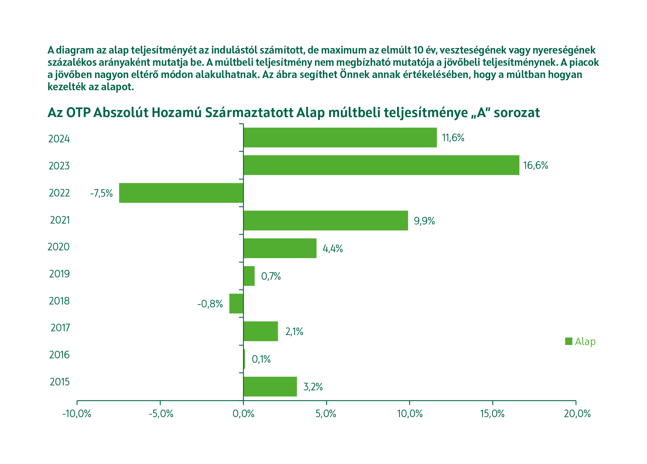 Az OTP Abszolút Hozamú Származtatott Alap célja, hogy aktív befektetési politikával a kockázatmentes hozamot meghaladó megtérülést érjen el a minimálisan ajánlott befektetési időtávon.