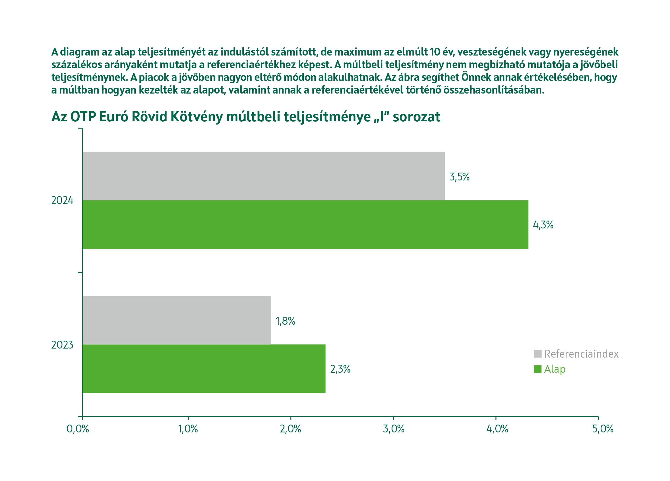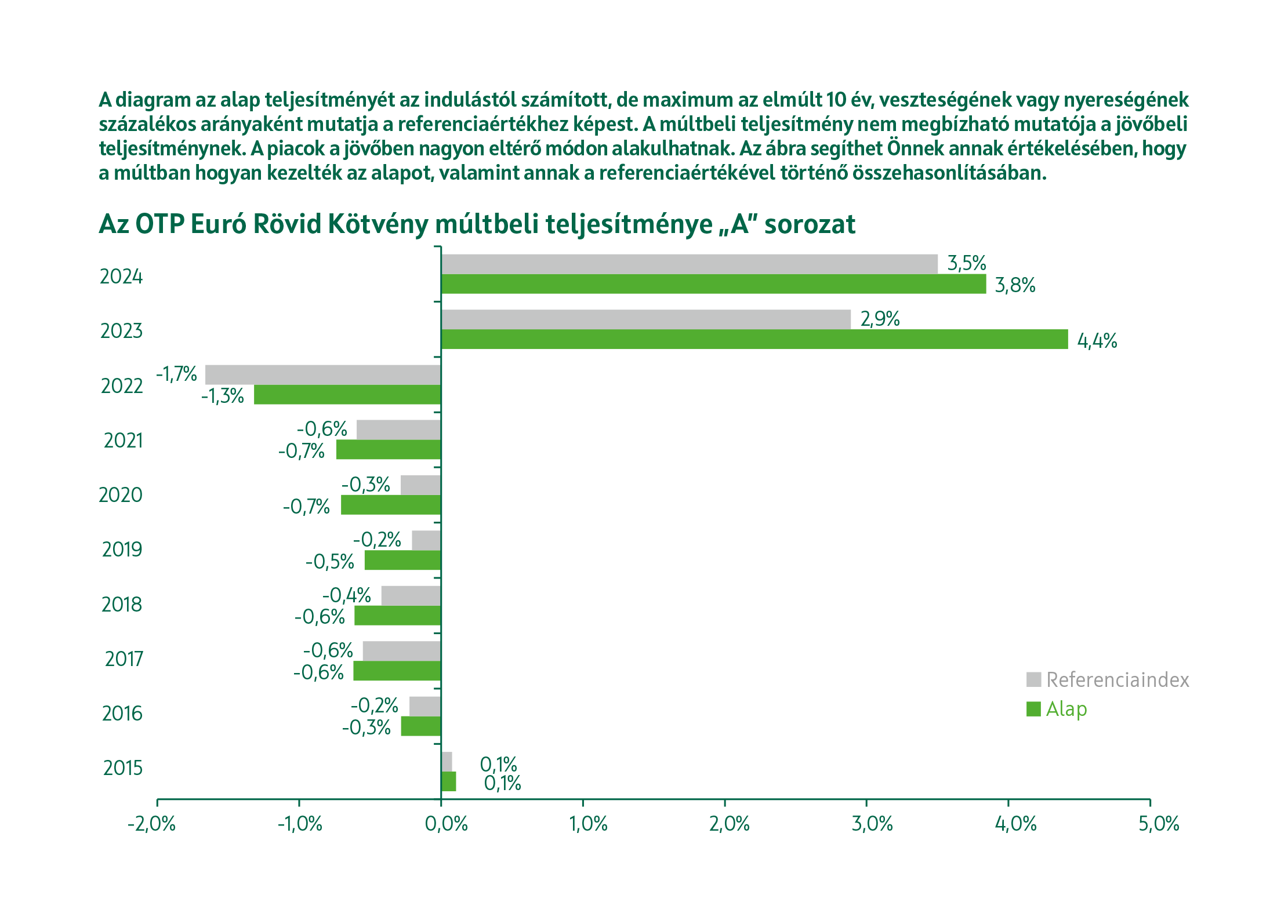 Indulás: 2001. december 13. | Bloomberg kód: OTPEURB HB Equity | Benchmark: 80% ICE BofaML 0-1Y All Euro Gov + 20% ICE BofaML 1-3Y All Euro Gov | ISIN azonosító: HU0000702162