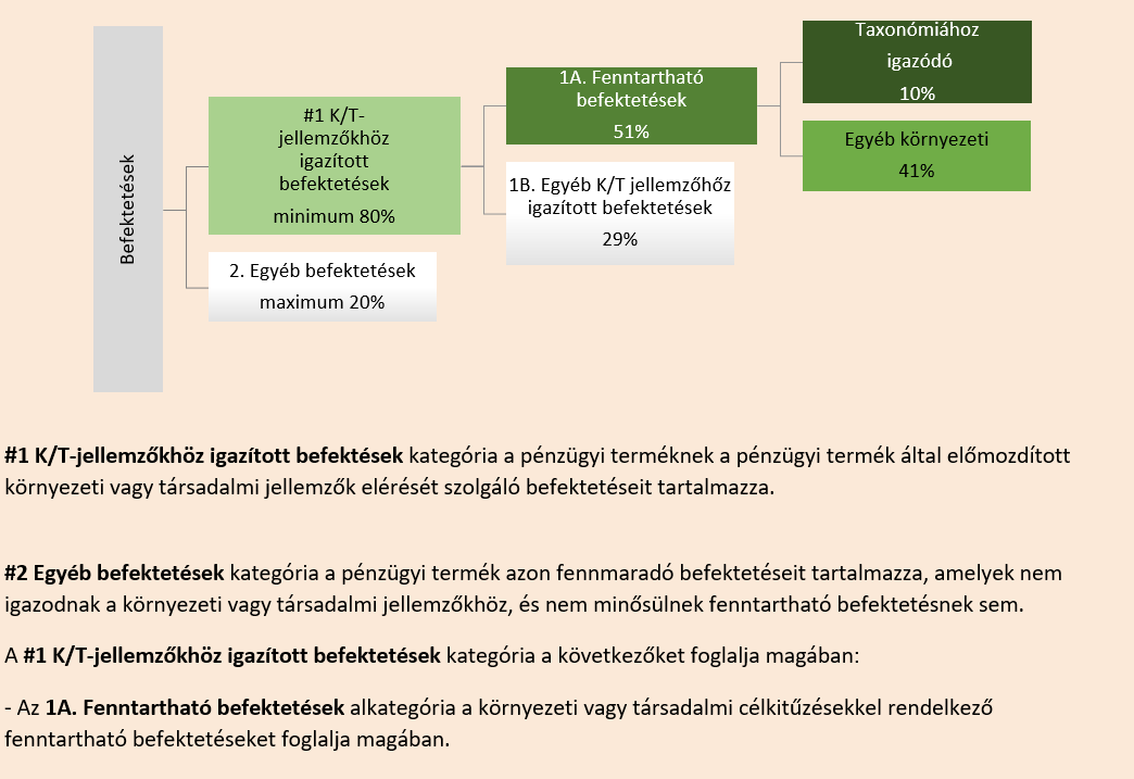 A végső portfolió minimum 80%-ban olyan befektetésekből kell, hogy álljon, amik környezeti vagy társadalmi jellemzőket mozdítanak