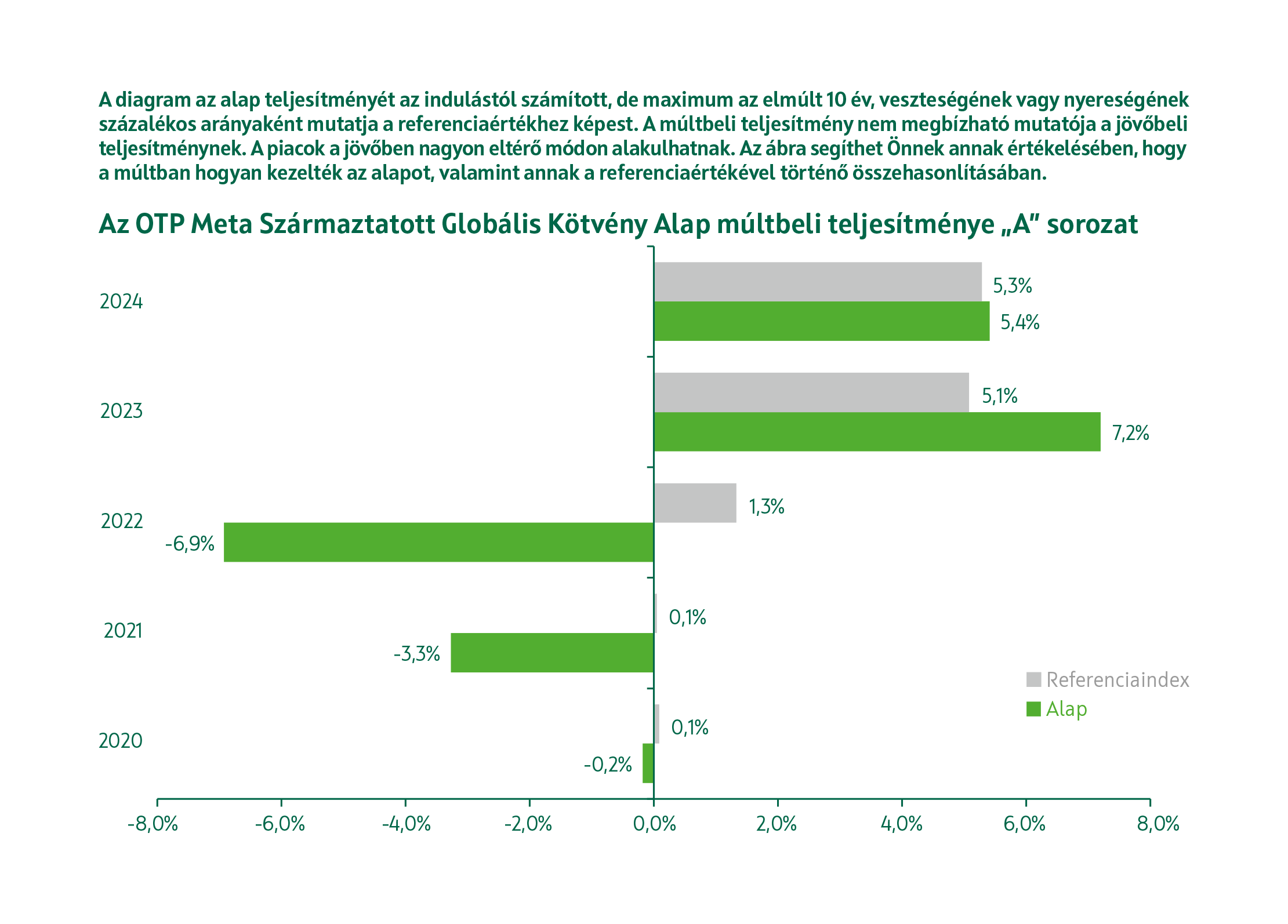 Referenciaindex (benchmark): az alap nem indexkövető, a referenciaindex összetételét az Alapkezelő a befektetési döntéshozatalhoz, illetve az alap teljesítményének méréséhez használja fel. A referenciaindextől való eltérés nincs korlátozva. Az alap összetétele és teljesítménye jelentősen, vagy akár teljes mértékben, rövid vagy hosszú távon, pozitív vagy negatív irányba eltérhet a referenciaindexétől.