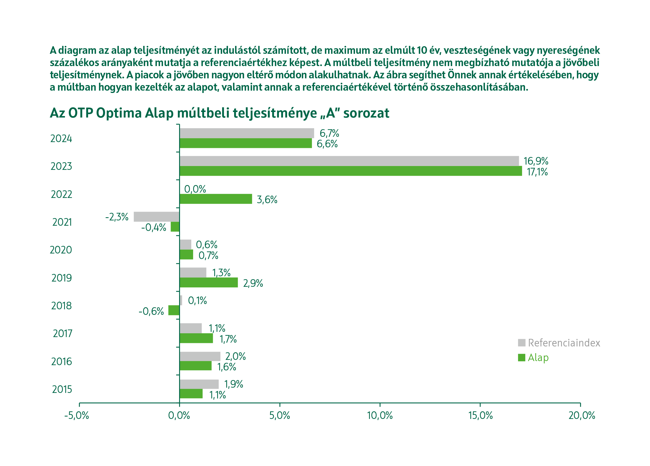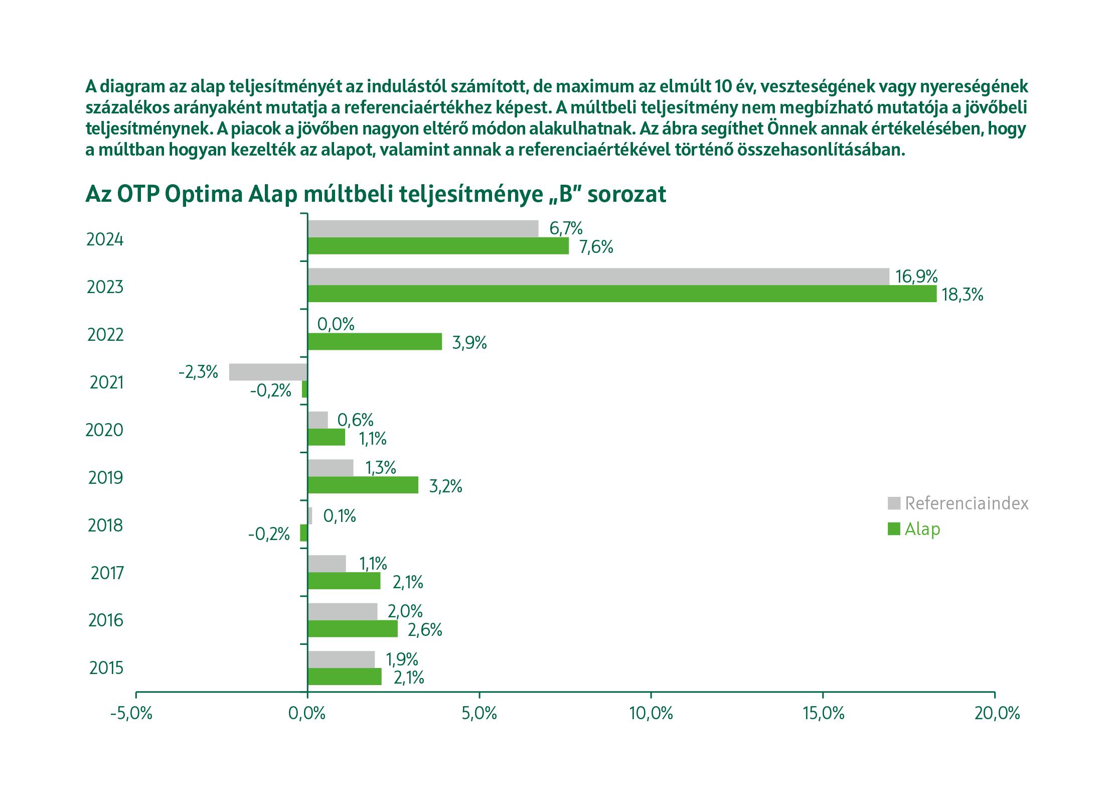 Referenciaindex (benchmark): az alap nem indexkövető, a referenciaindex összetételét az Alapkezelő a befektetési döntéshozatalhoz, illetve az alap teljesítményének méréséhez használja fel. A referenciaindextől való eltérés nincs korlátozva. Az alap összetétele és teljesítménye jelentősen, vagy akár teljes mértékben, rövid vagy hosszú távon, pozitív vagy negatív irányba eltérhet a referenciaindexétől.