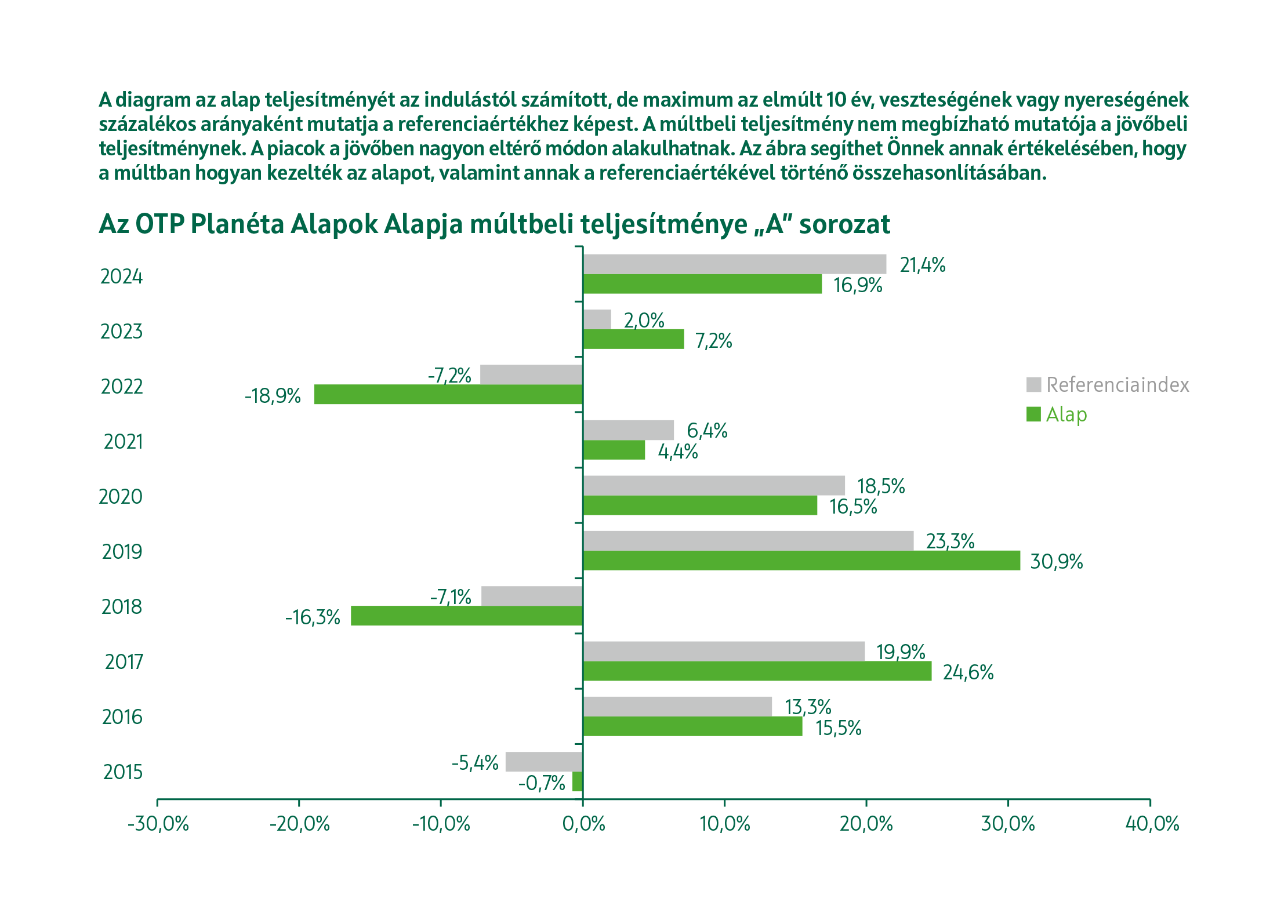 Referenciaindex (benchmark): az alap nem indexkövető, a referenciaindex összetételét az Alapkezelő a befektetési döntéshozatalhoz, illetve az alap teljesítményének méréséhez használja fel. A referenciaindextől való eltérés nincs korlátozva. Az alap összetétele és teljesítménye jelentősen, vagy akár teljes mértékben, rövid vagy hosszú távon, pozitív vagy negatív irányba eltérhet a referenciaindexétől.
