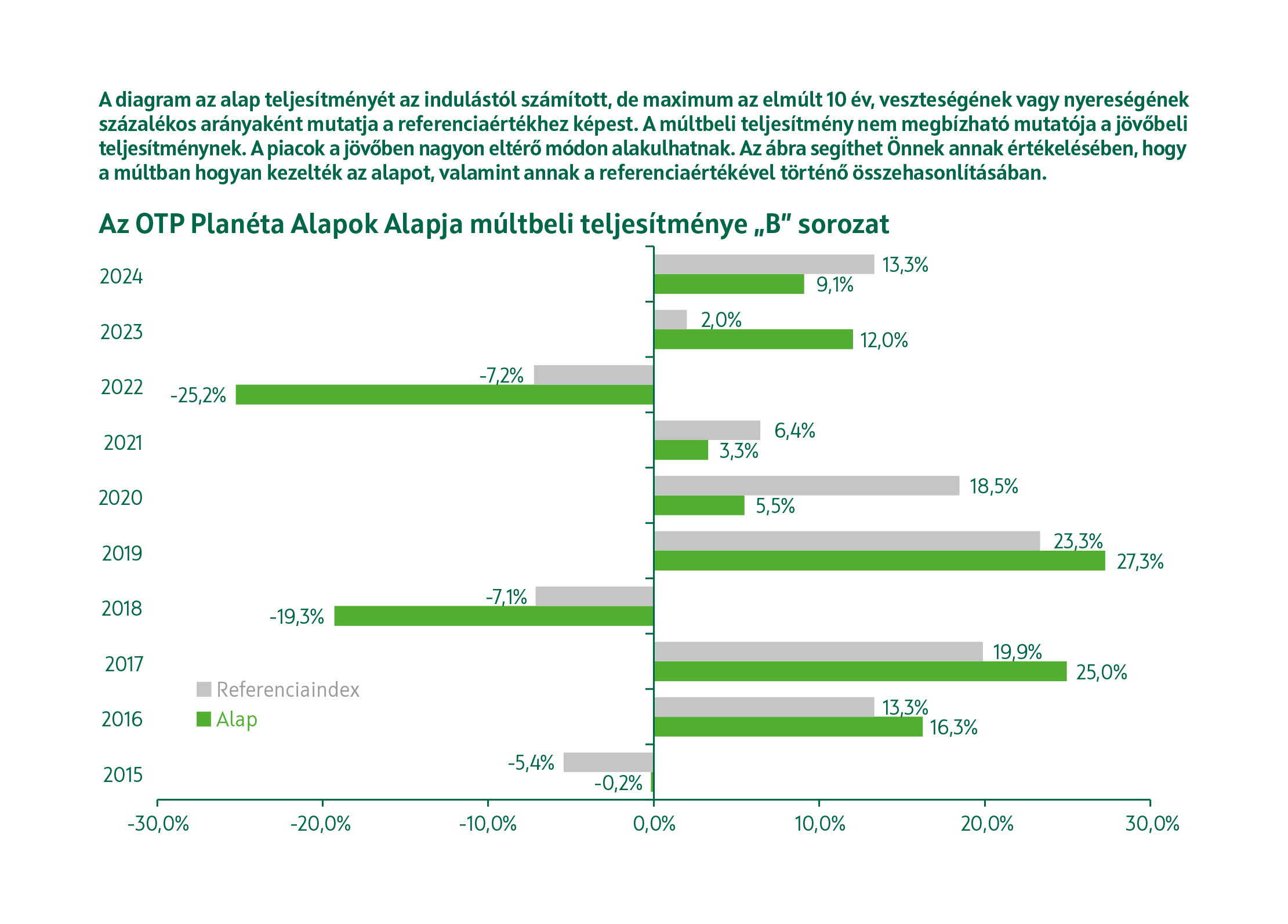 Az alap múltbeli teljesítménye nem nyújt garanciát a jövőbeli hozamok nagyságára. Befektetési döntéshez nem elég a visszatekintő hozamok vizsgálata, elengedhetetlen a minimálisan ajánlott befektetési időtáv betartása.