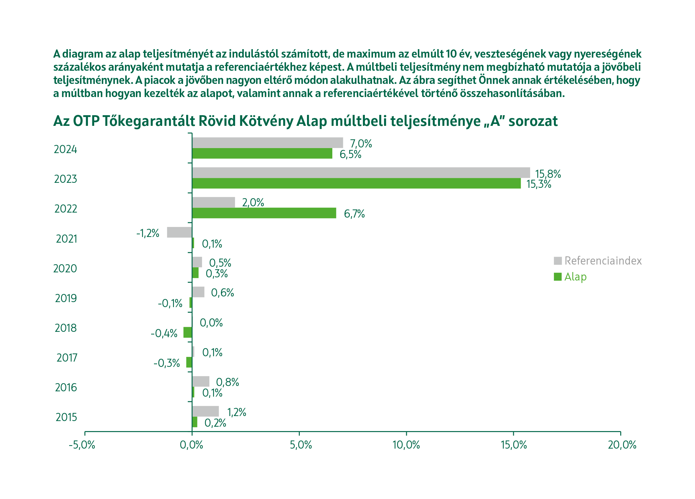 Referenciaindex (benchmark): az alap nem indexkövető, a referenciaindex összetételét az Alapkezelő a befektetési döntéshozatalhoz, illetve az alap teljesítményének méréséhez használja fel. A referenciaindextől való eltérés nincs korlátozva. Az alap összetétele és teljesítménye jelentősen, vagy akár teljes mértékben, rövid vagy hosszú távon, pozitív vagy negatív irányba eltérhet a referenciaindexétől.
