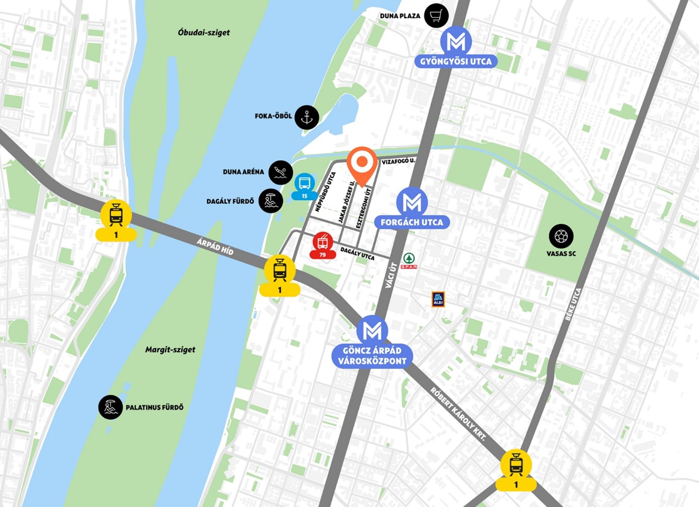 A karnyújtásnyira lévő hármas metró, az 1-es villamos, a közeli busz és trolibusz járatok a város több jelentősebb csomópontját gyorsan elérhetővé teszi, a Váci úti irodafolyosó biztosította több száz munkahely közvetlen közelsége pedig számos, a Dagály Parkban - saját vagy befektetési céllal - lakást vásárló munkába járási idejét rövidítheti le.