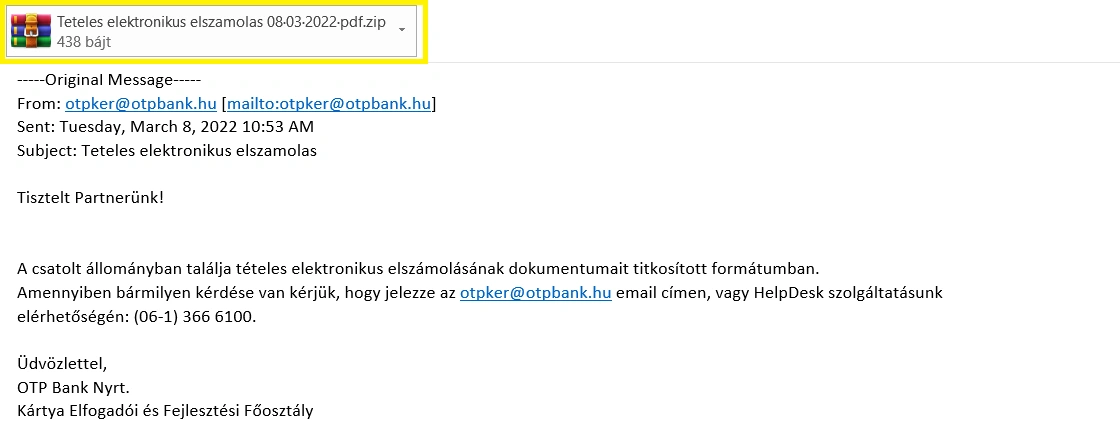 Az OTP Bank nevével visszaélve adathalászok küldenek e-maileket és bennük kártékony csatolmányt.