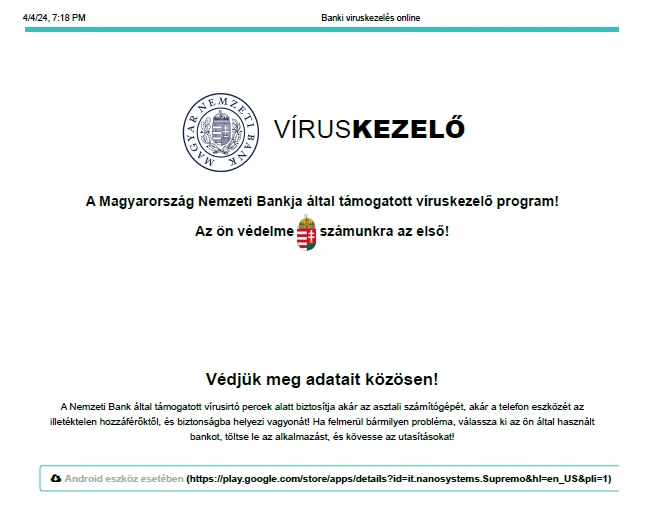 meg adatot, ne telepítsen telefonjára semmit, hanem azonnal törölje!