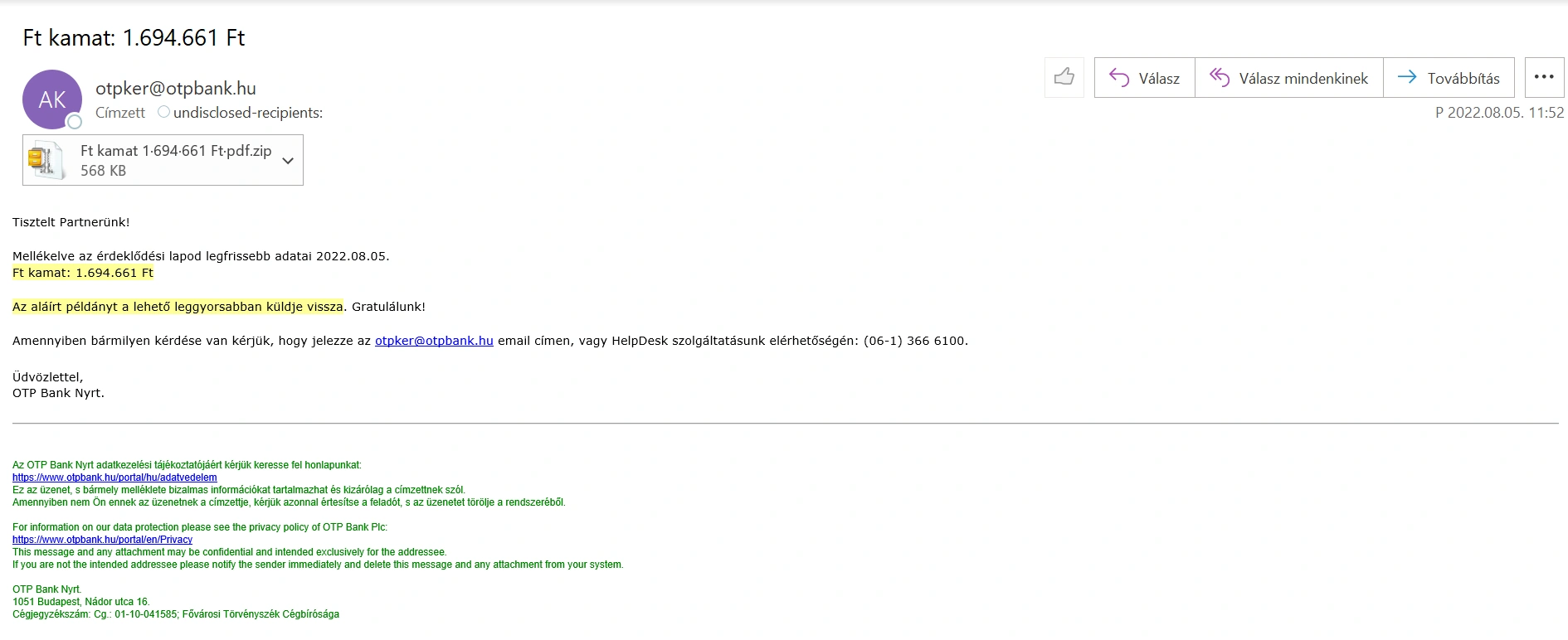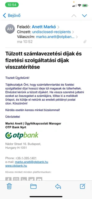 A szövegezésből, illetve a levél formájából is látszik, hogy ezt a levelet nem az OTP Bank küldte ügyfelének.