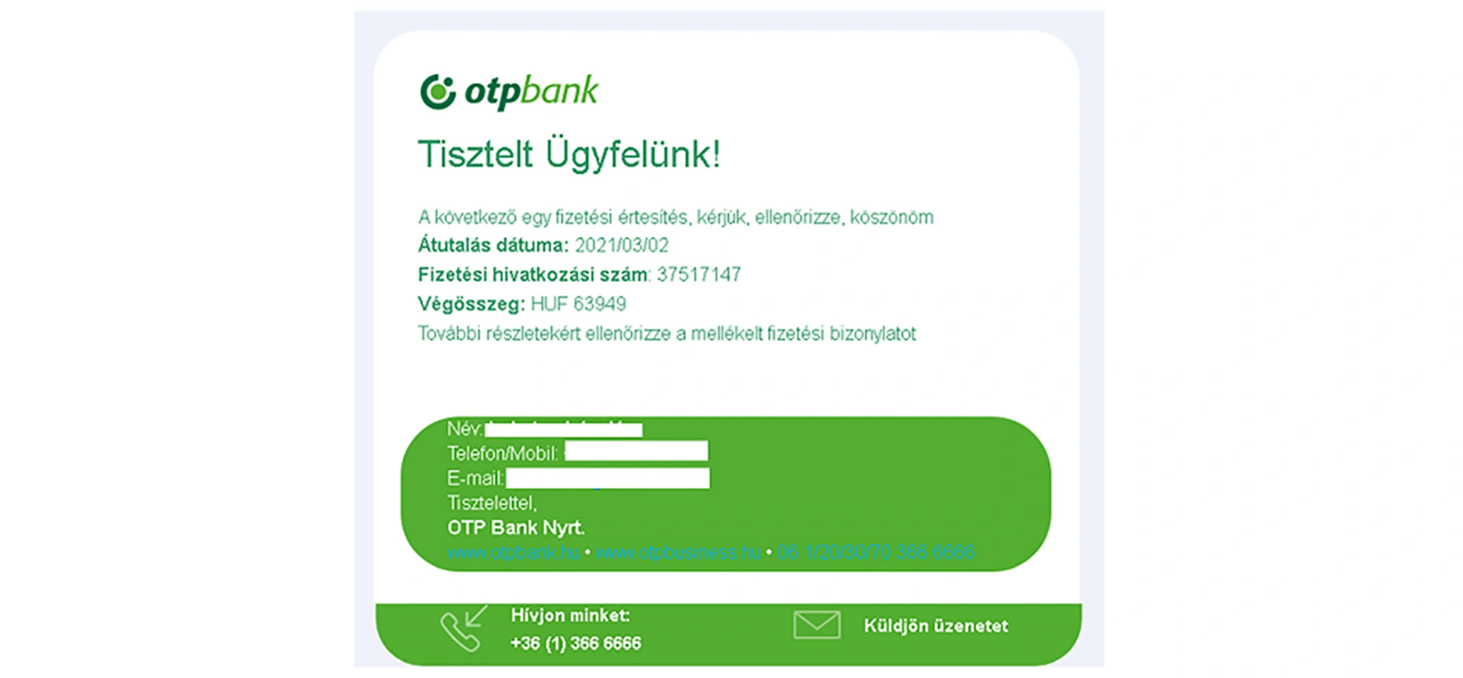 Nem meglepő módon, az ilyen tartalmú leveleket nem az OTP Bank küldte ki. Nyomatékosan kérjük a címzetteket, hogy semmiképp se kattintsanak a mellékletre, mert annak megnyitása veszélyt jelenthet az eszközön tárolt adatokra. Akár az is megtörténhet, hogy a bűnözők átveszik az eszköz felett az irányítást.
