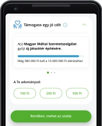 Az új internet- és mobilbankban, ha elmentett partnereidnek utalsz, támogathatsz egy számodra fontos ügyet 250, 350 vagy 500 forinttal.