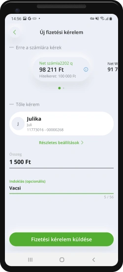 Elmentett partnereidnek és új címzetteknek is küldhetsz fizetési kérelmet, ha máshol bankolnak is.