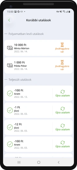 - A korábbi utalásokat meg tudod ismételni a Korábbi utalások listában az Újra utalom lehetőséget választva.