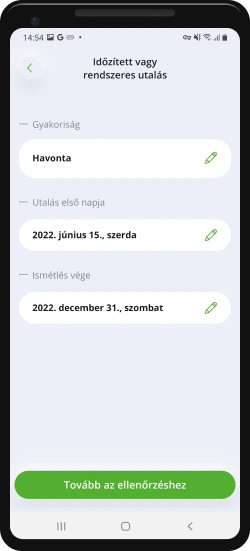 Egy új utalás véglegesítése előtt válaszd az Időzített vagy rendszeres utalás lehetőséget és add meg az utalás gyakoriságát és időzítését.