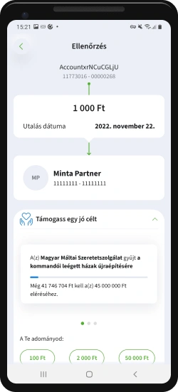Ha elmentett partnereidnek utalsz, támogathatsz egy számodra fontos ügyet 100, 200 vagy 500 forinttal.