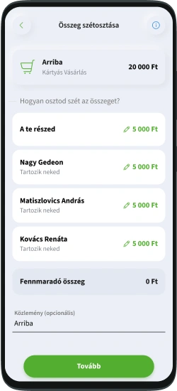 Az összeget az OTP MobilBankban szereplő partnereid között tudod szétosztani. Bővebben