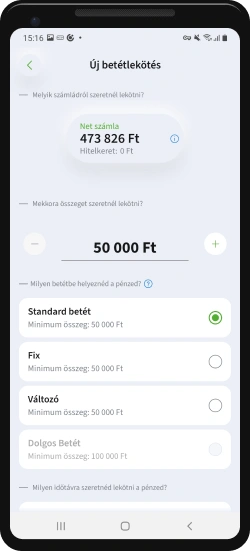 Válaszd ki, melyik számládról és mekkora összeget, illetve milyen időtávra szeretnéd lekötni a pénzedet.