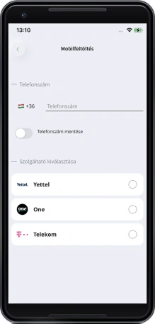 2. add meg a feltölteni kívánt telefonszámot és válaszd ki a szolgáltatót